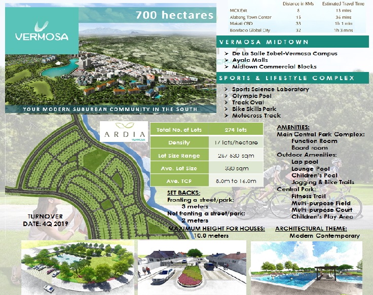 Vermosa is accessible to key urban centers through various road networks—via Daang Hari Road, SLEX through the MCX exit, and the upcoming Cavite Laguna Expressway (CALAX) Road—enhancing its potential to be the new growth center in the south.