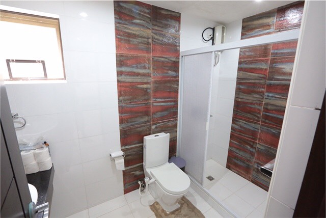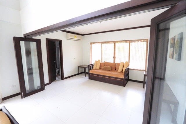 The 750-sqm house built on a 598-sqm lot has four bedrooms plus a den that can serve as the 5th bedroom. All with its own toilet and bath. The big master's bedroom has partial view of the beach. It has a lanai, a breakfast nook, driver's and maid's quarter with own toilet and bath as well.